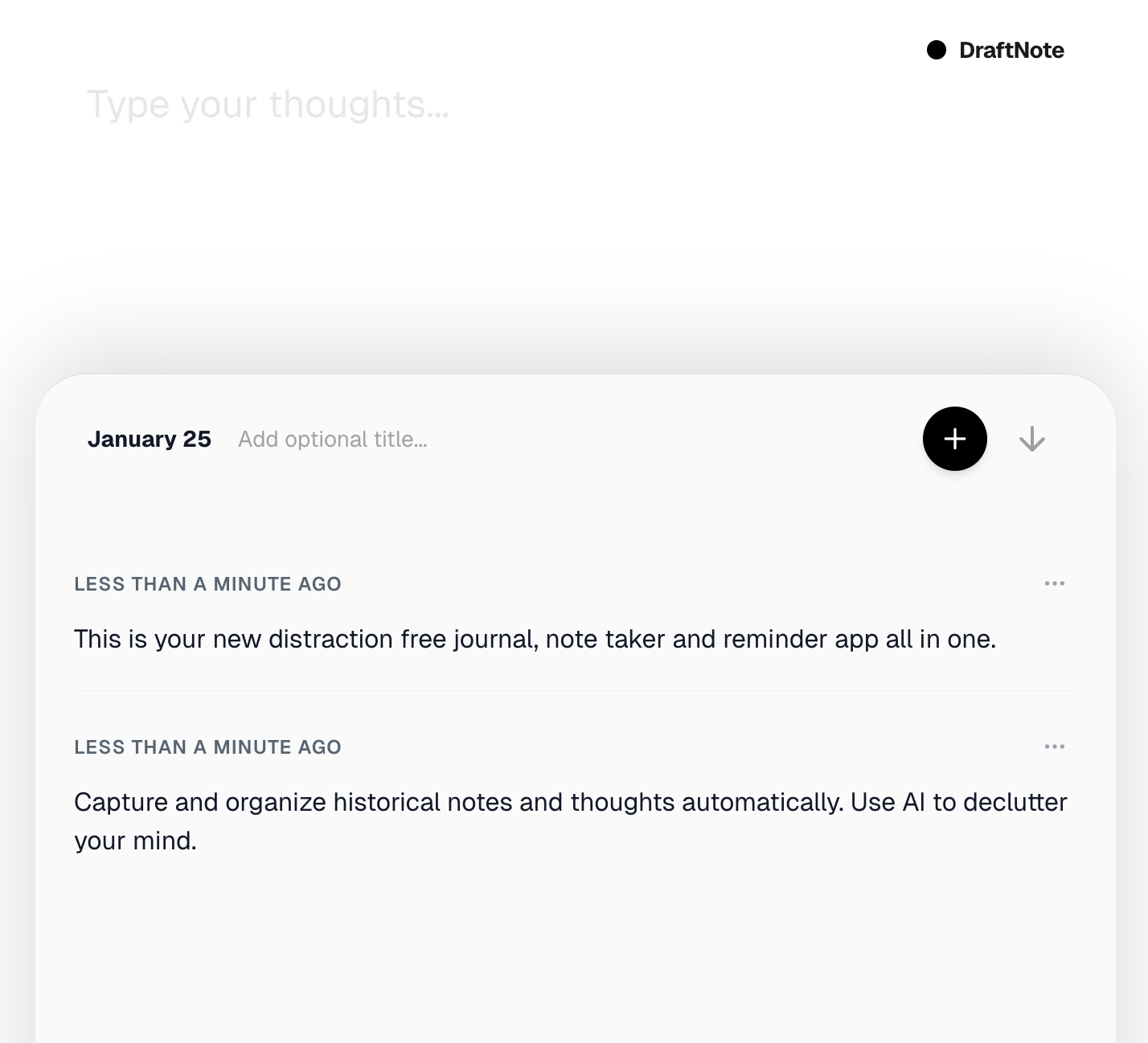 Open the app and start typing. Your thoughts are saved instantly as you write. No complicated setup—just pure, distraction-free input.